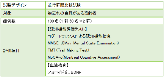 弊社では、これまでに認知機能・脳活動試験として複数受託しており、「認知機能速度を維持する」というヘルスクレームの機能性表示食品を取得した研究の実施経験もございます。(参考論文:「健常者を対象としたプラズマローゲン摂取による脳機能改善効果」.薬理と治療 Vol.47 / No.5 739-749)